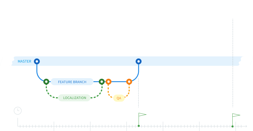 Keep developing new features and improvements while translators receive new texts in real time. Release multilingual versions for customers around the globe simultaneously.