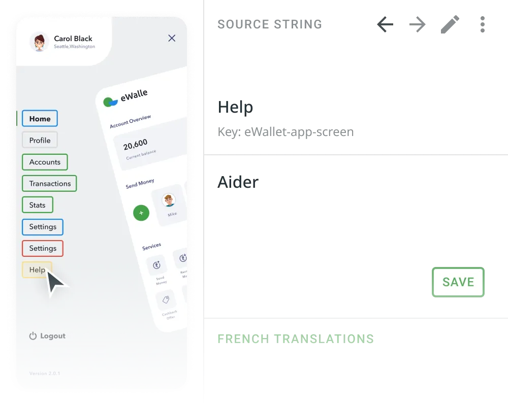 Crowdin's Screen Translation simplifies UI localization by allowing users to translate interface elements with a real-time preview of your app design.
