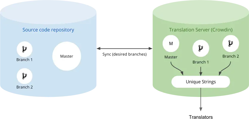 crowdin-cli upload sources -b mastercrowdin-cli download -b masterThis new feature will also become the great helper for companies that maintain several versions of the same product, for example one can have product 6.x still supported along with 7.x.