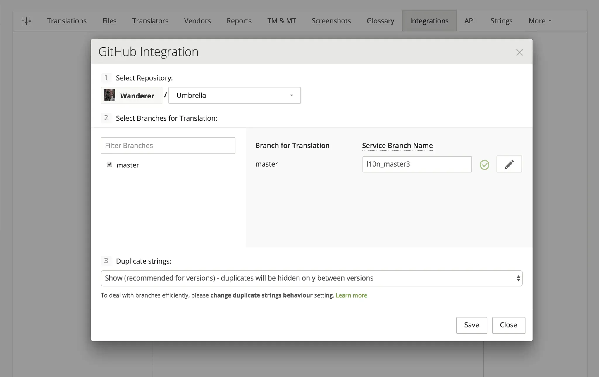 When translations are finished and your languages are ready to go live, Crowdin sends pull request with translations to you version control system. For every branch that is under localization, Crowdin creates additional localization branch with translations. We do not commit directly to master, so that you have a chance to verify translations and keep your app safe and sound.